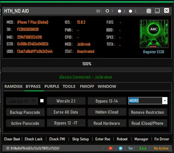 Unlock iCloud with Full Signal & SIM Support the advanced features of the HTH ND tool v2.7.0, including IPWND BOOT Ramdisk, Backup passcode, Active Passcode, General Hello Files Bypass, Hello Fix Notification(.sisv), Read Apple ID, Read Hardware Block/Enable OTA-R, and Remove restrictions. Compatible with iOS 12-18 devices. Get it now for free!