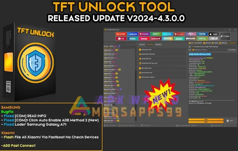 TFT Unlock Tools 2024-4.3.0.0 offers Samsung direct FRP removal and QR code ADB enabling with auto update bug fixes like Fastboot flashing without device checks. Unlock your Xiaomi device today.