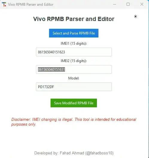 Free Download Vivo RPMB File Save And Exporting Edit File management with the Vivo RPMB Parser and Editor v1.0 tool. Easily edit, save, and export RPMB files with this all-in-one solution. This tool excels in extracting and displaying both IMEI1 and IMEI2 and edit or compliance.